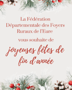 La Fédération départementale des Foyers Ruraux de l’Eure (FDFR27) sera fermée du mardi 24 décembre au lundi 6 janvier inclus.
