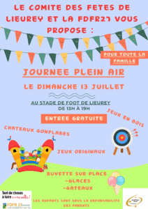13 juillet 2025 | 14 h 00 min - 19 h 00 min Event Series agenda journée plein air Lieurey 42 avenue du stade, lieurey, normandie, France